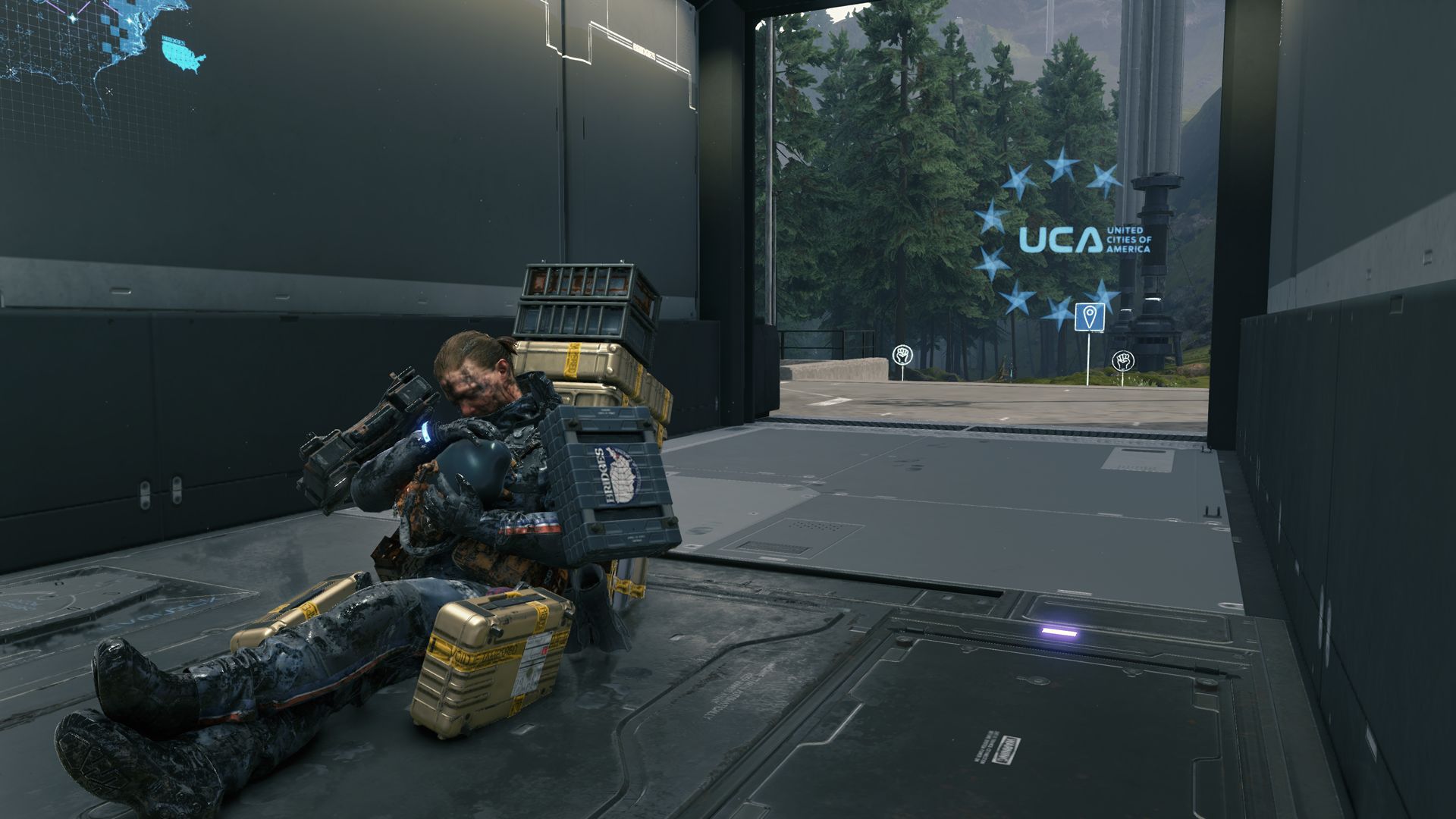 Zwłaszcza, że w niektórych kwestiach oczekiwali ode mnie większej uwagi. Zaskakująco wiele informacji jest ukrytych w mailach czy notatkach. Tym razem nie są przedłużeniem rozmów z Codecu, jak to było z nagraniami z The Phantom Pain, a otrzymują jedynie formę tekstową. Produkcja wymusza częste odpoczywanie w bazach, aby móc zregenerować zarówno zapasy jak i siły Sama. Jest to też jedyna okazja do przesłuchania piosenek Low Roar czy Silent Poets. W związku z tym te krótkie chwile wypełnionego delikatnym brzmieniem odpoczynku zdają się być idealnym momentem do nadrabiania informacji. W nich można poznać nie tylko losy osób, którym się pomaga, ale także lepsze tło samego kataklizmu czy głębszą eksploracje wielu motywów poruszanych przez grę. Od chiralności cząsteczek aż po egipskie wierzenia dotyczące śmierci, w szczególności dychotomię istnienia – podział na duszę (Ka) i ciało (Ha). Część z nich można sobie darować, ale większość faktycznie zawiera istotne strzępki wiedzy, dlatego szkoda, że przekazano je jedynie w formie tekstu. Nawet mimo tego, że pasuje to do świata, który ze zgrozą patrzy na kontakty bezpośrednie.