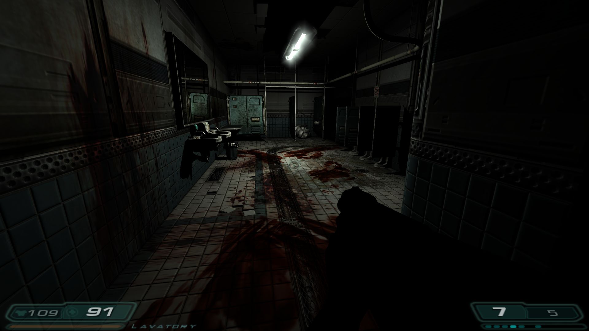 Legendarna ciemność D3 nie jest przesadą i nierzadko o lokalizacji wroga informują tylko czerwone oczy. Użytkowanie latarki jest niesłusznie krytykowane i edycja BFG ogromnie traci na jej integracji. Tytuł był projektowany z myślą o dezorientowaniu gracza i ciemność jest w tym kluczowym narzędziem.