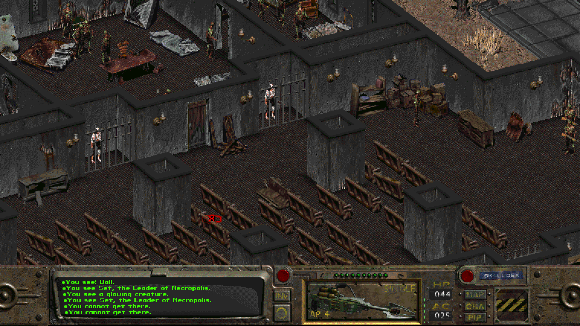 To ogólny problem interfejsu, który nie należy do bardzo intuicyjnych czy łatwych w użyciu. Po części to wina progresu w tej dziedzinie przez te wszystkie lata, ale istotna jest też zupełnie inna filozofia projektowania gier. Fallout powstał w czasach, gdy instrukcje zawierały nieco więcej informacji niż zalecenie zrobienia sobie przerwy po kilku godzinach zabawy - faktycznie wyjaśniały jak działa dany tytuł. Dlatego warto się z nią zaznajomić, choćby po to, by potrafić używać dostępne przedmioty. Niemniej, część problemów, jak składający się z wąskiej kolumny ekwipunek, który trzeba za każdym razem przeklikiwać, czy zawierający śladowe informacje na temat questów Pipboy, naprawią jedynie mody.