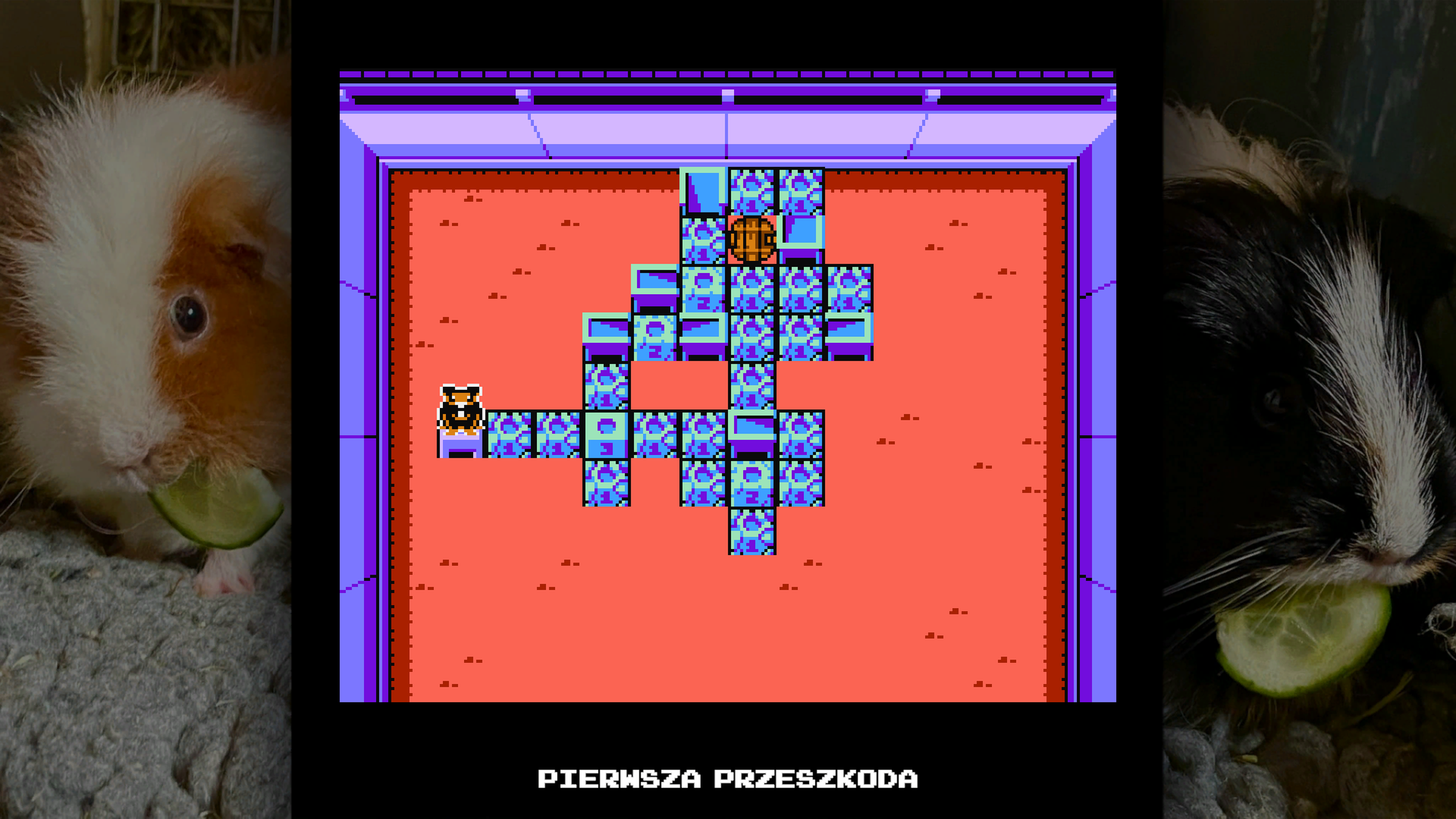 Gruniożerca 3 - The Great Cavy Clean-up! podobał mi się najbardziej. Cel jest prosty - rozbić wszystkie klocki poprzez skakanie na nie. Jednakże znalezienie odpowiedniej drogi, by to zrobić, wymaga chwili zastanowienia i kilku prób. Zwłaszcza gdy jest się przytłoczonym całym ekranem w klockach!