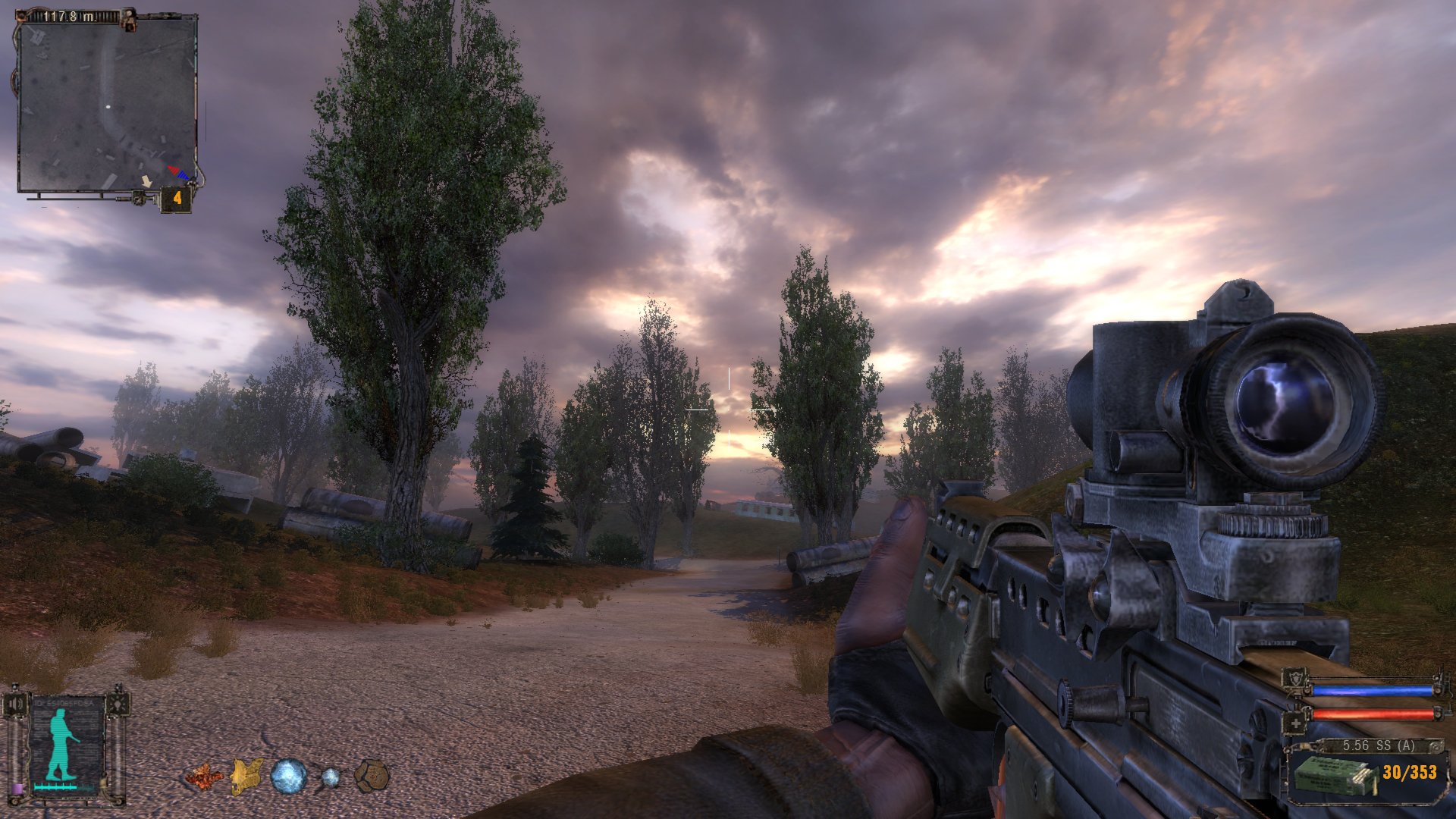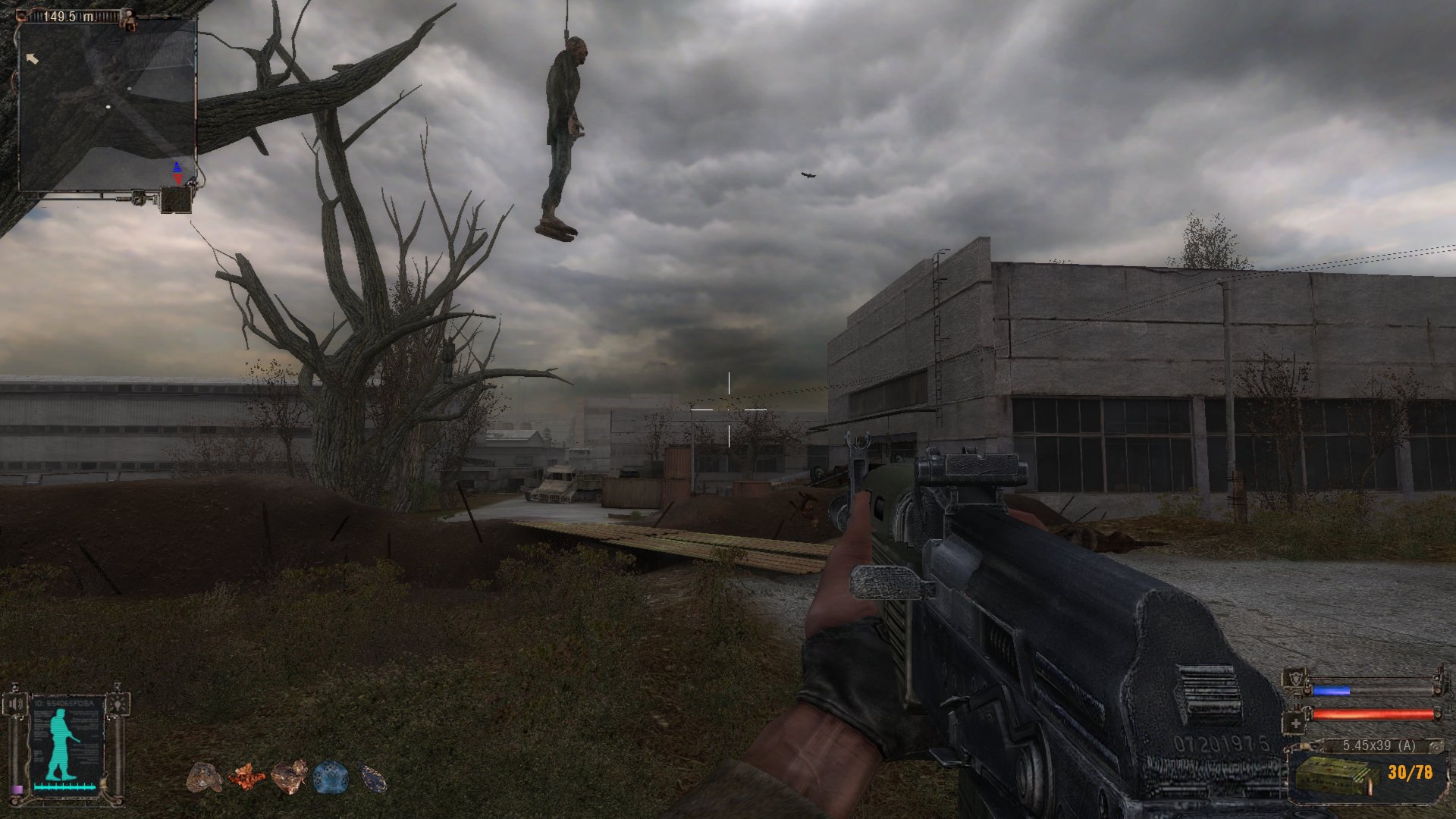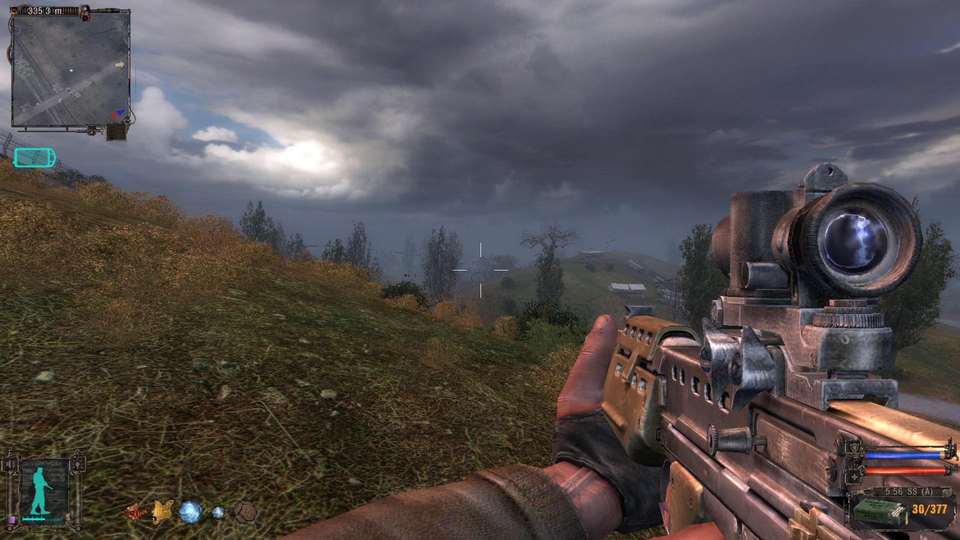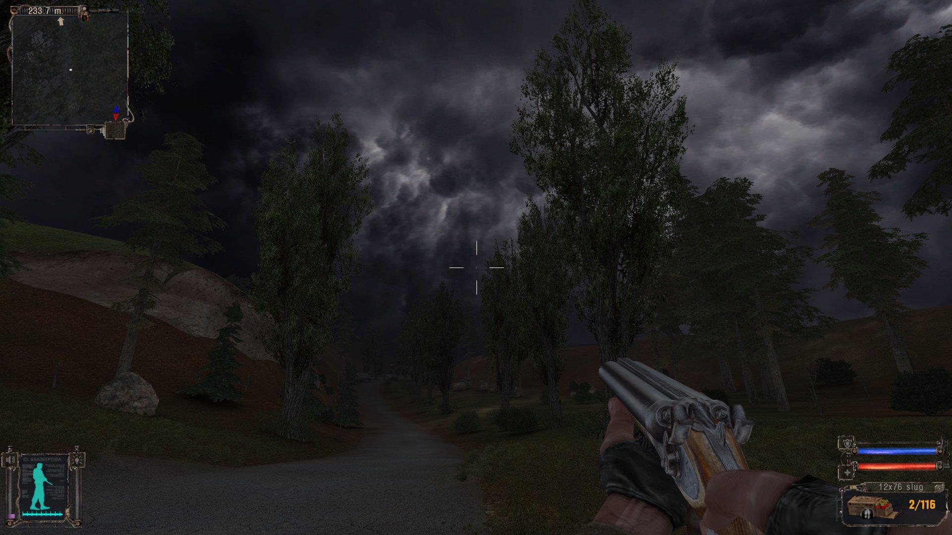Od pierwszych chwil w grze oczarowuje atmosfera. Zona jest niebezpiecznym i niegościnnym miejscem, które łączy późnojesienne krajobrazy ze zrujnowaną, brutalistyczną architekturą. Tworzy to cudowną mieszankę sowieckiej depresji, będącej mi zaskakująco znajomej, nawet bardziej niż City17 z HL2. Uczucie ciągłego osaczenia i osamotnienia zwiększają fantastyczne dźwięki i efekty pogodowe. Niesamowite niebo zrobiło na mnie ogromne wrażenie, dzięki dużej różnorodności i bogactwie zmieniających się chmur. Łatwo się w nim zatracić, gdy stoi się nocą wśród drzew i jedyne co słychać, to spadające krople deszczu. Albo wzdrygnąć się, gdy zamieni się on w odgłos dyszącego mutanta. STALKER jest względnie wymagającą grą, gdzie braki w lekach czy amunicji są niemal ciągle odczuwalne, przez co trudno być dobrze przygotowanym. To, w połączeniu z naprawdę niezłymi odgłosami otoczenia oraz czarna nocą sprawia, że niektóre wyprawy są niezwykle emocjonujące i pełne strachów. Zwłaszcza gdy broń postanowi zaciąć się akurat w momencie ataku pozbawionej żuchwy, półprzezroczystej bestii. Po takim starciu, ujrzenie w oddali ciepłej łuny ogniska i usłyszenie znajomych dźwięków gitary działa kojąco.
