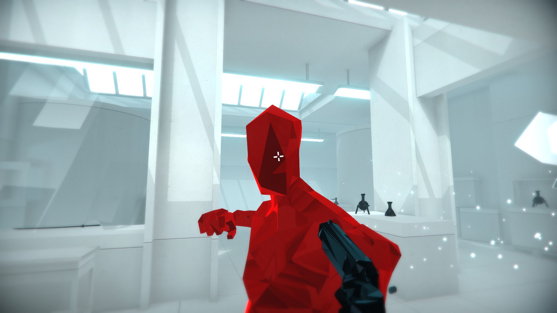 SUPERHOT to cudownie prosta idea. Każdy poziom to osobny filmowy scenariusz tuż przed wybuchem przemocy, gdzie ruch wpływa na upływ czasu. To, wraz z ciągłym żonglowaniem bronią, wymusza kontrolowane i złożone strzelaniny, które gra kompresuje do efektownych kilkunastu sekund.