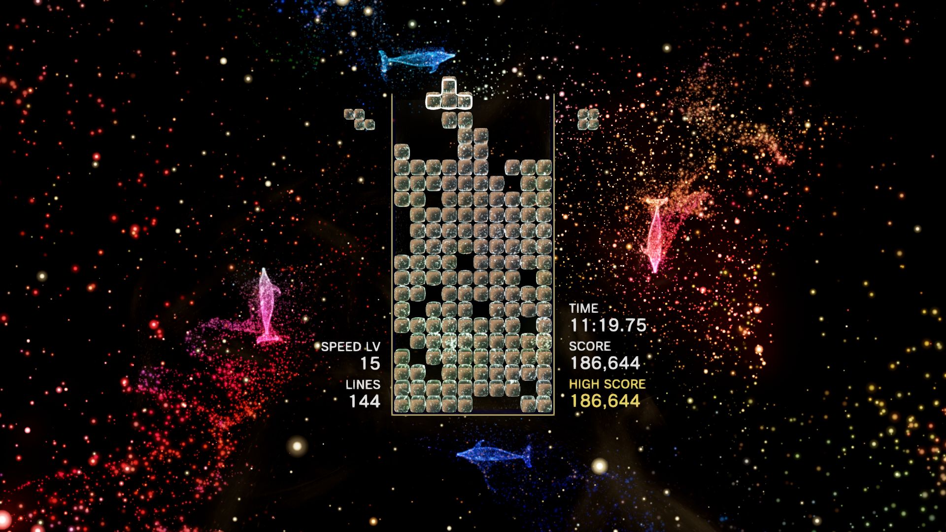 Zaskakuje mnie jak wiele różnorodnych trybów, często w bardzo kreatywny sposób testujących umiejętność układania klocków, udało się upchnąć w Tetris Effect. Mechanika Zone potrafi uratować skórę, ale też idealnie nadaje się dla doświadczonych graczy do zdobywania mnóstwa punktów.